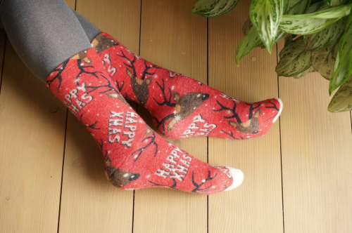 025 MAHRA Махровые шерстяные носки Мерри крисмас. Олень