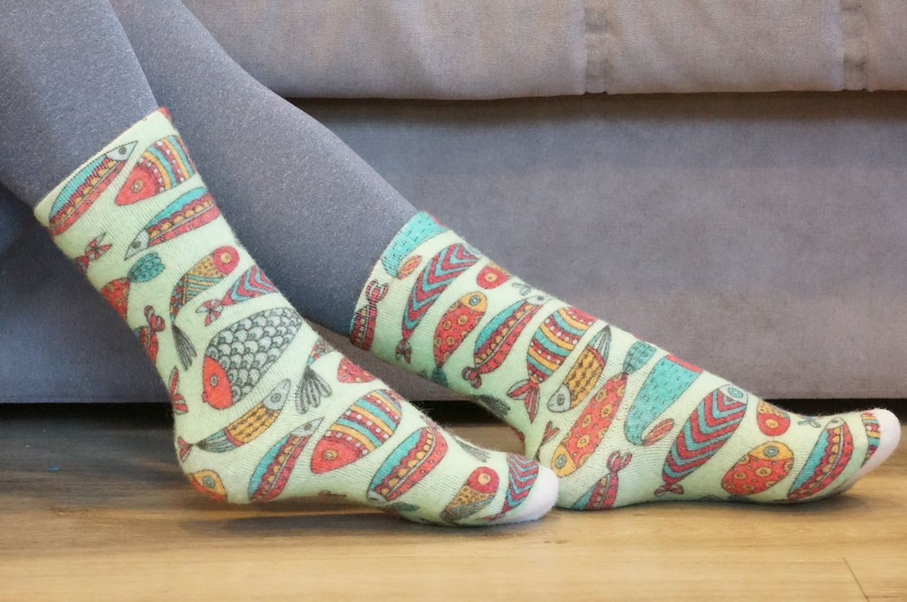006 MAHRAМахровые шерстяные носки Рыба моей мечты на зеленом