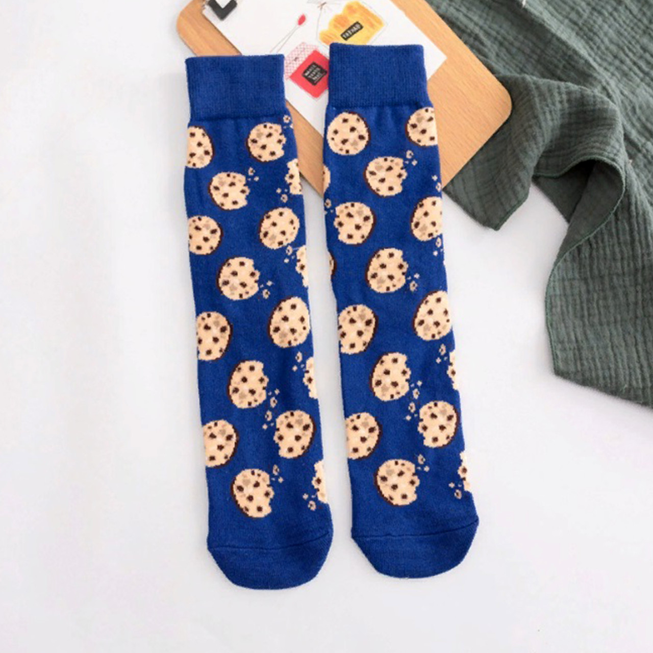 Носки "Mini food" Крекер Серия мини еды. Милые и запоминающиеся принты продуктов. Принт маленьких крекеров Фон носка синий. Хлопок 1 сорта (гребенный), мягкие и комфортные носки. Всесезонные РРЦ 290 руб.