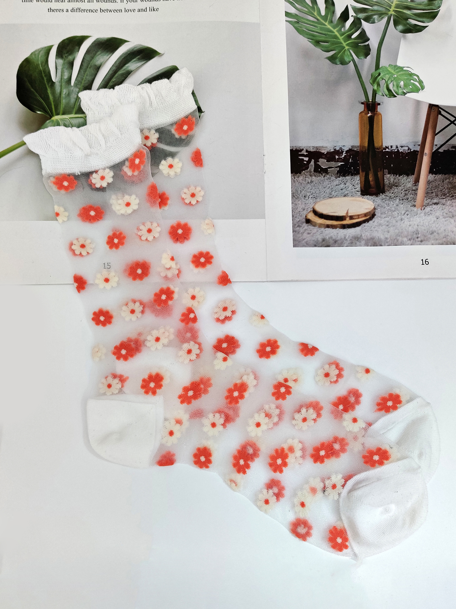 Носки Прозрачные р.35-40 "Ромашки" Красные