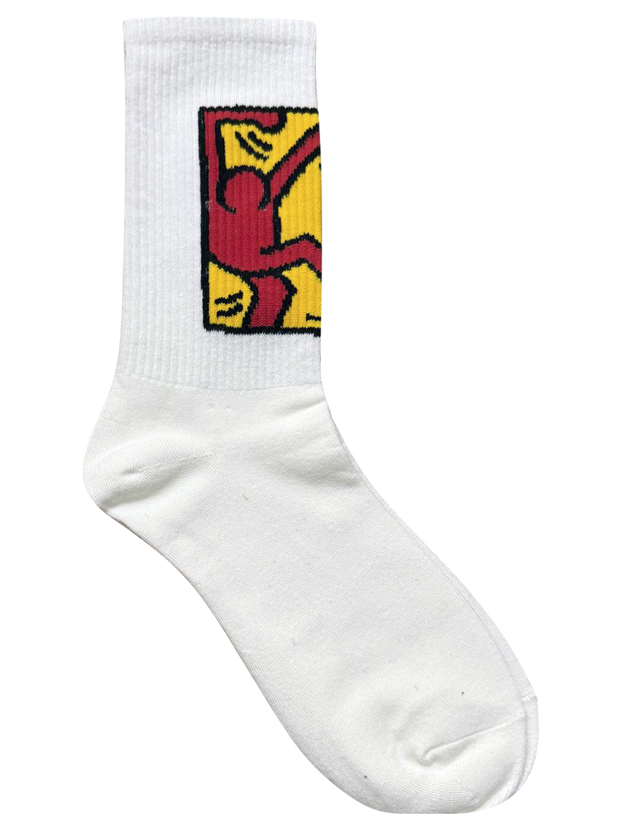 Носки с принтом: танцующий красный человечек с голубым мячом