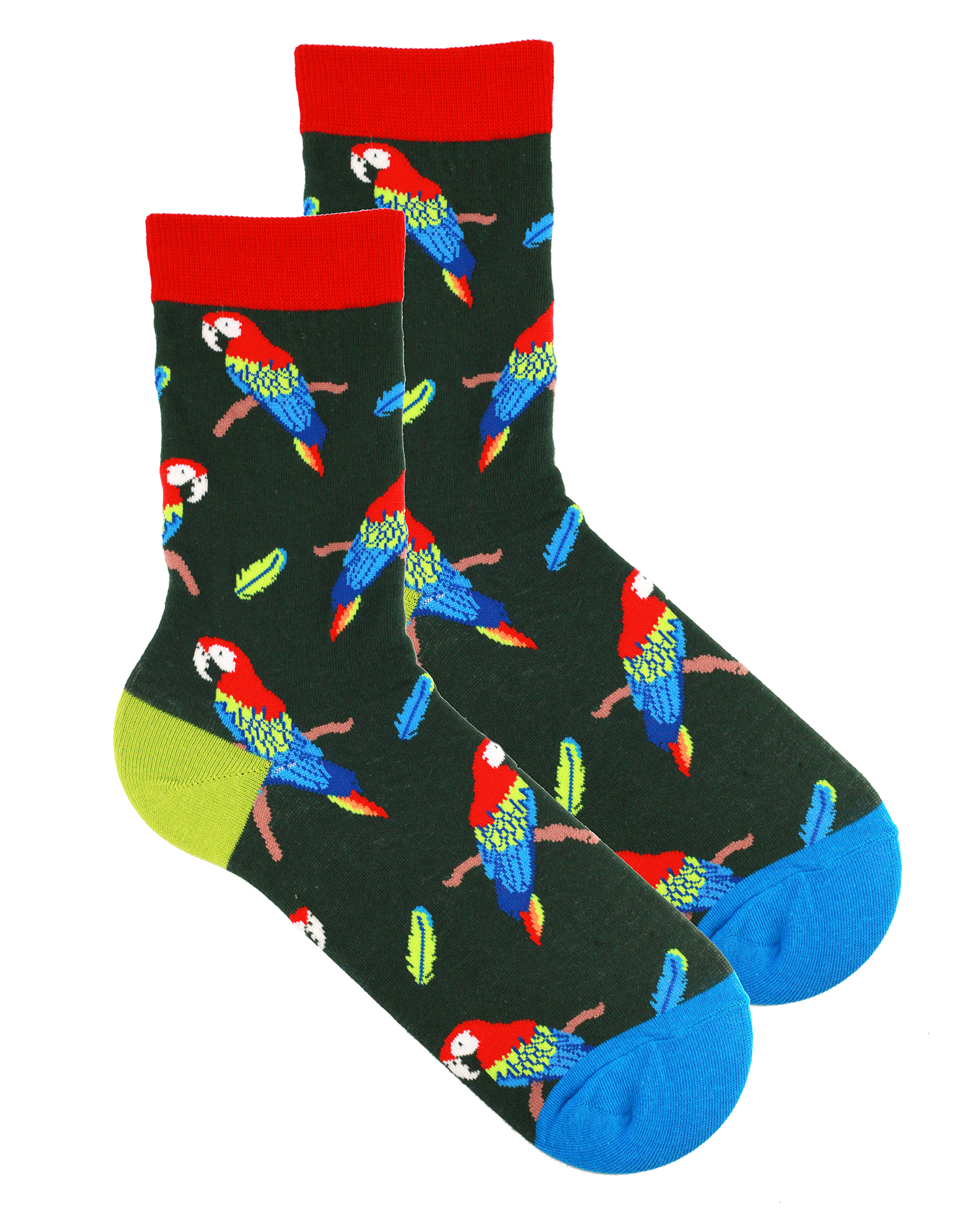 Носки с принтом яркого разноцветного попугая на ветке