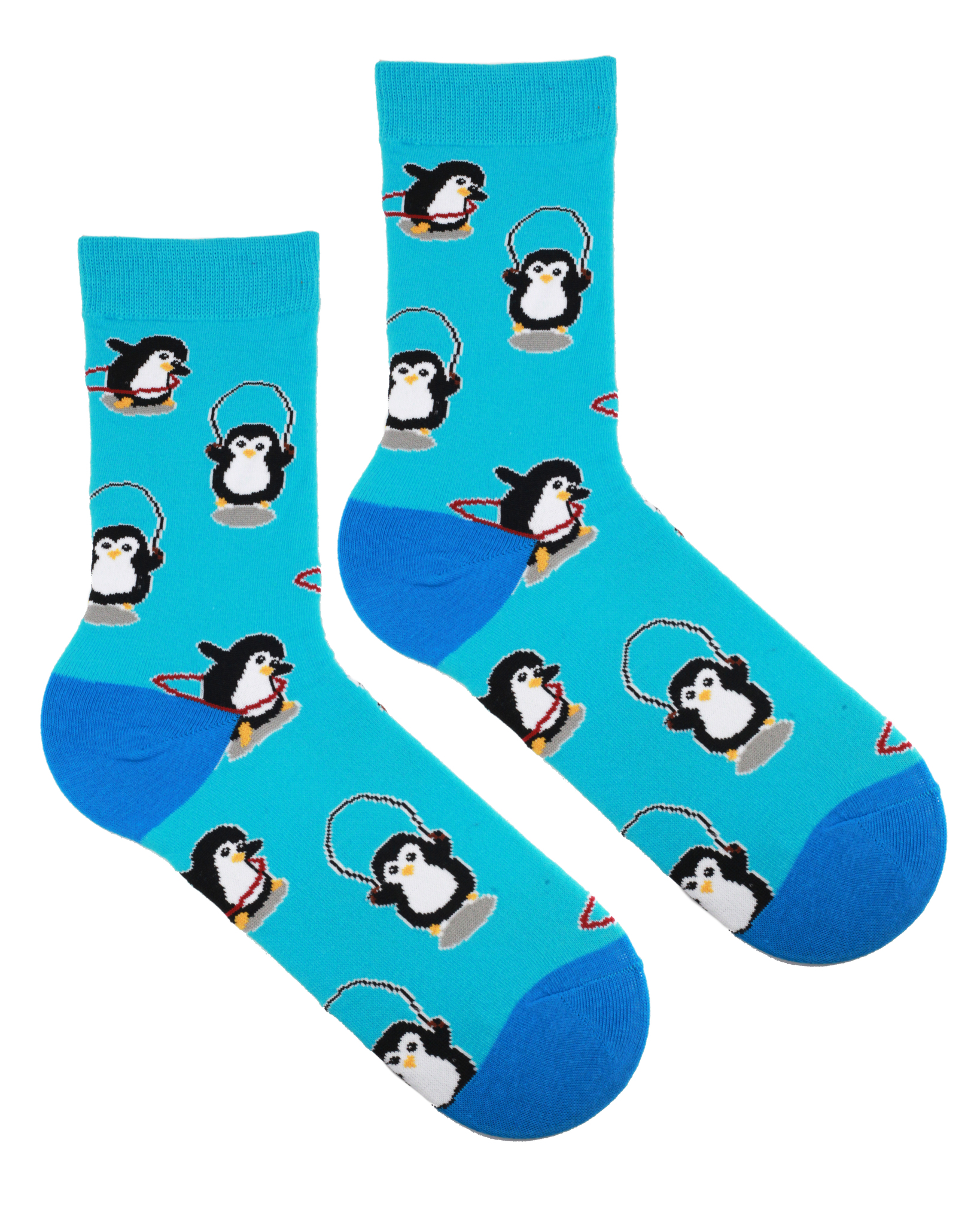 Забавные носки с принтом полненького пингвина со скакалкой и обручем