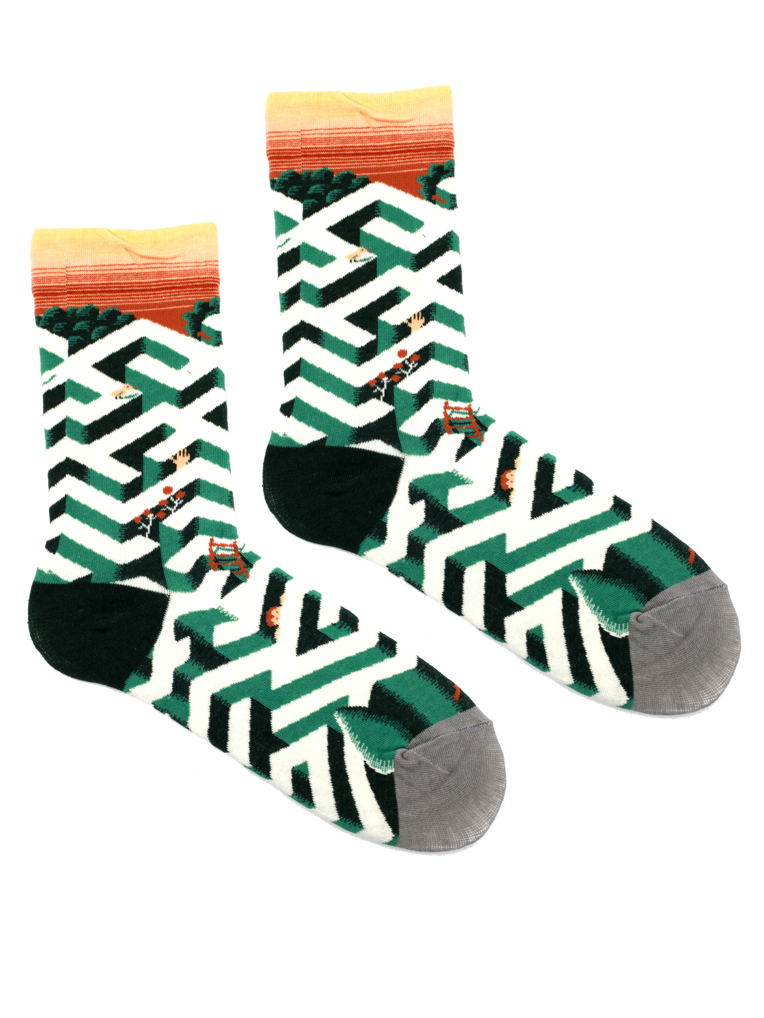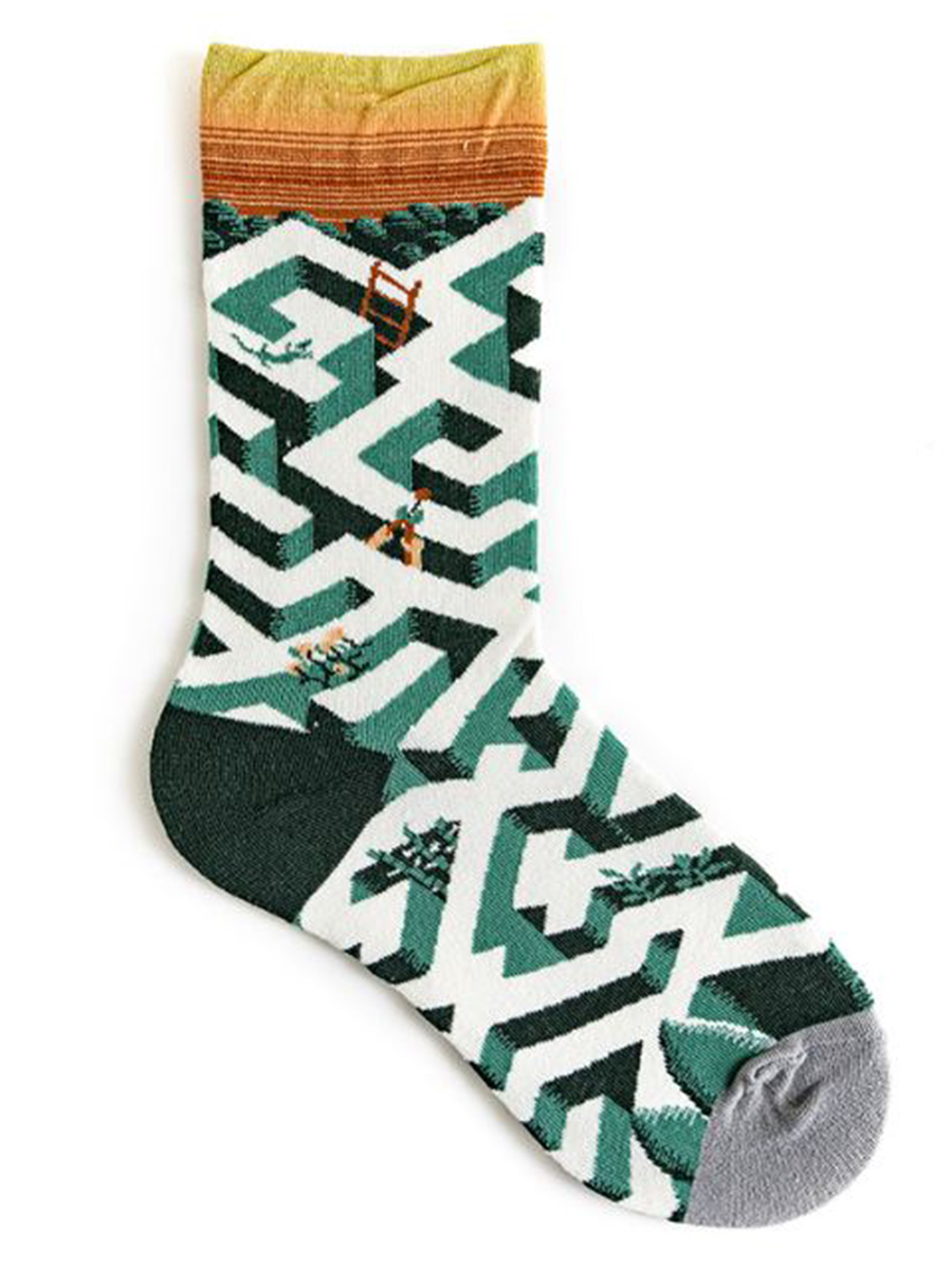 Носки с принтом лабиринта из кустов и лестницы