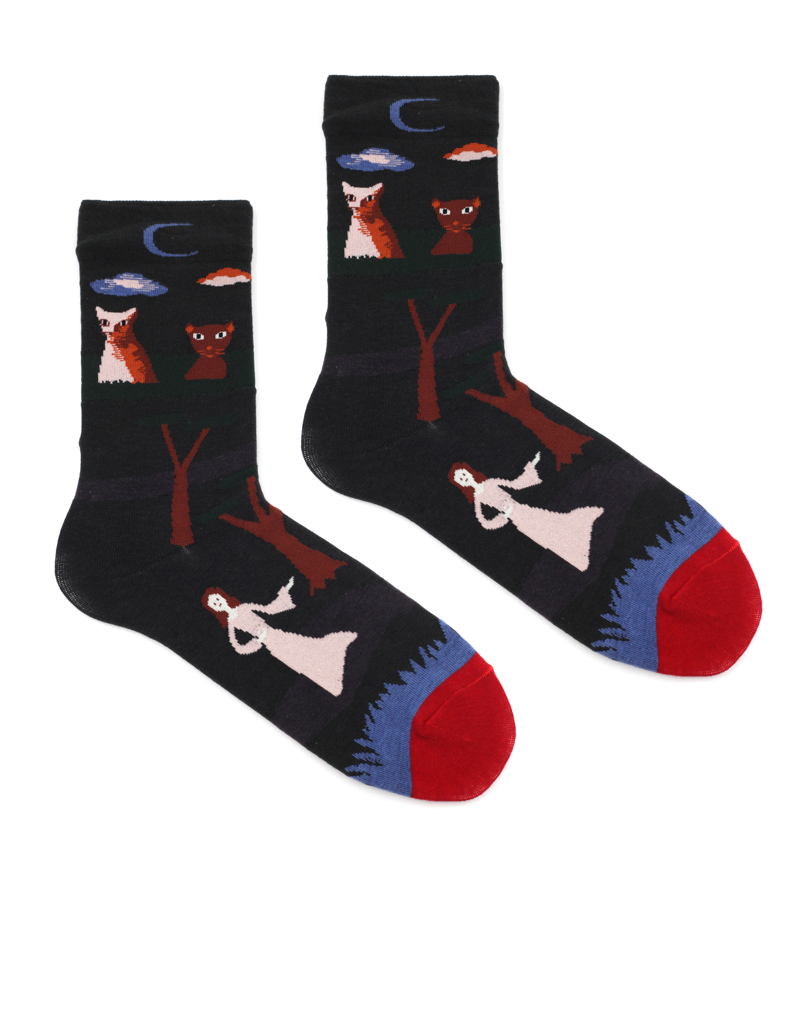 Носки с названием "Странная ночь" - принт кошечек, леса, дамы и луны