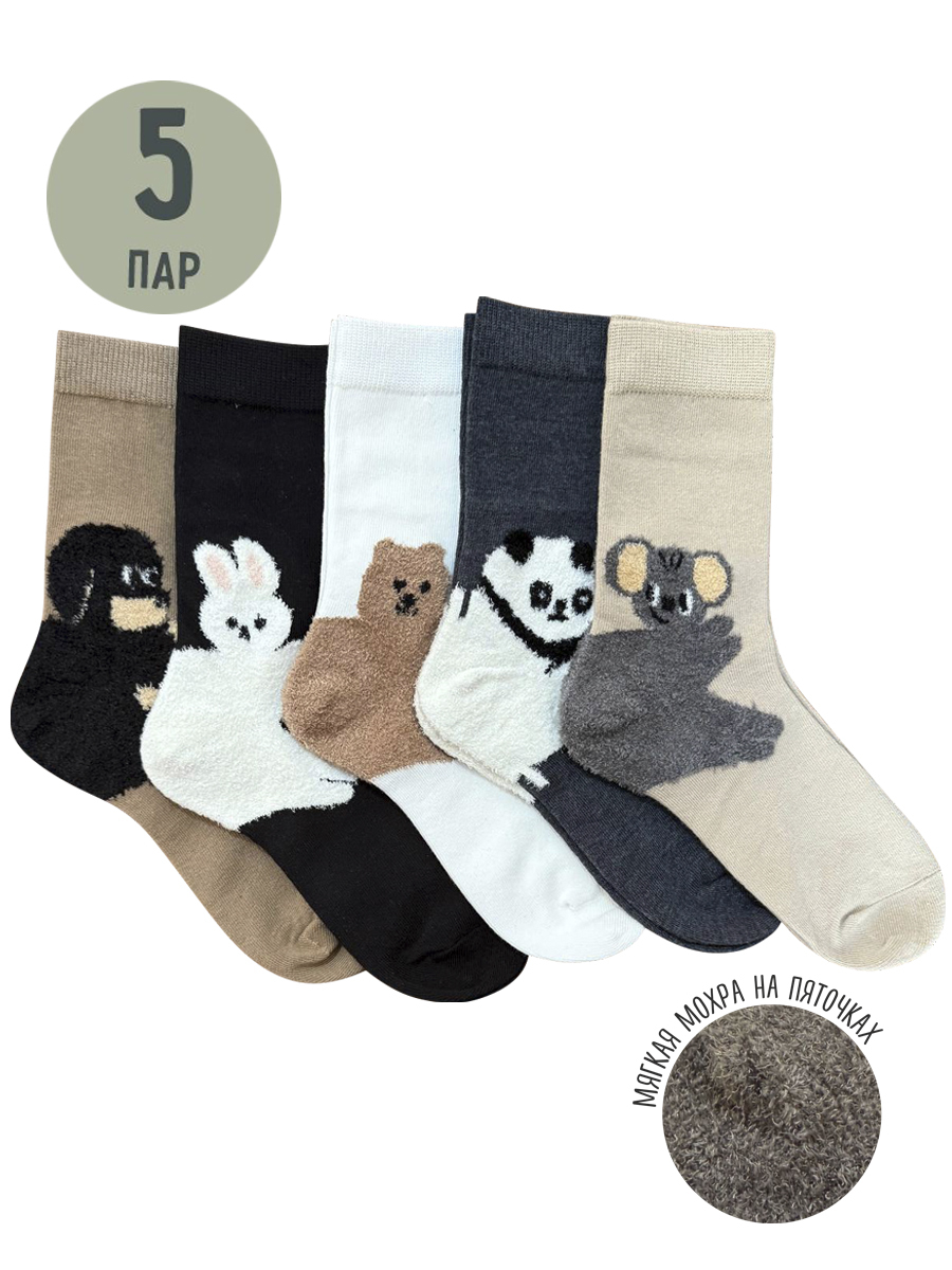 Носки р.35-40 "Зверюшки на пятках" Комплект - 5 пар