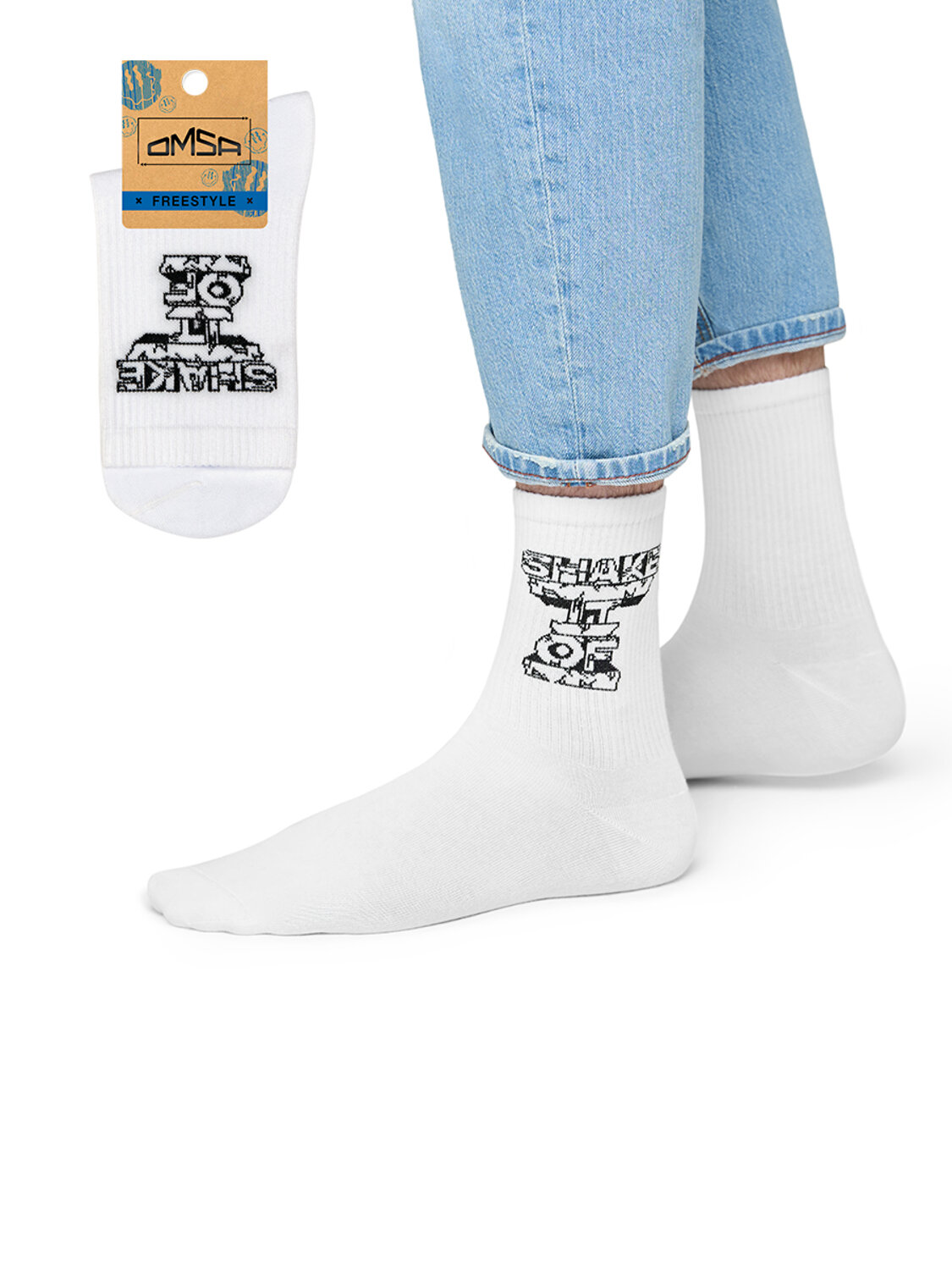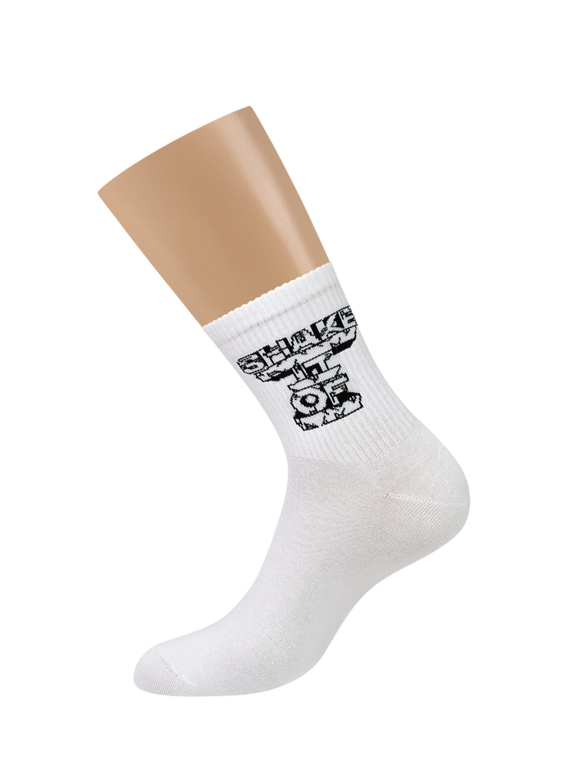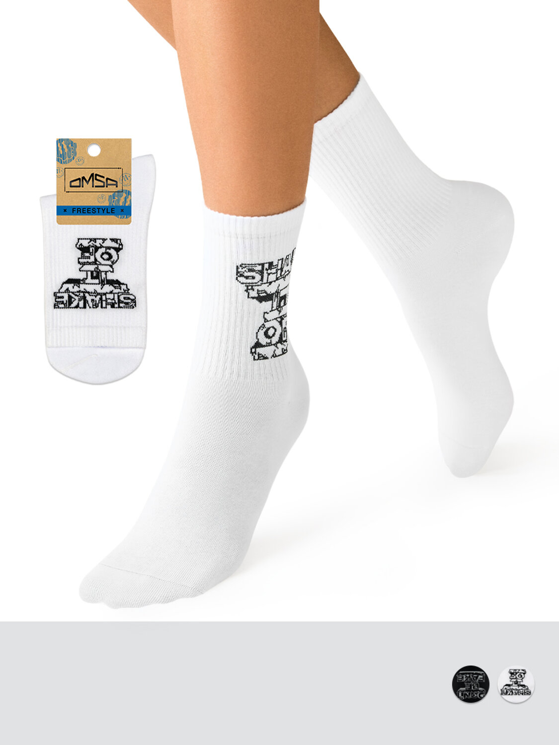 Носки унисекс OMSA с трендовыми надписями «Shake it OFF» и «Don't be fake» на резинке. В составе - высококачественный хлопок, который позволяет коже дышать, отлично впитывает влагу и подходит даже для самой чувствительной кожи, и эластан, который обеспечивает превосходное облегание. Удобная резинка и кеттельный (плоский) шов на мыске создают дополнительный комфорт.