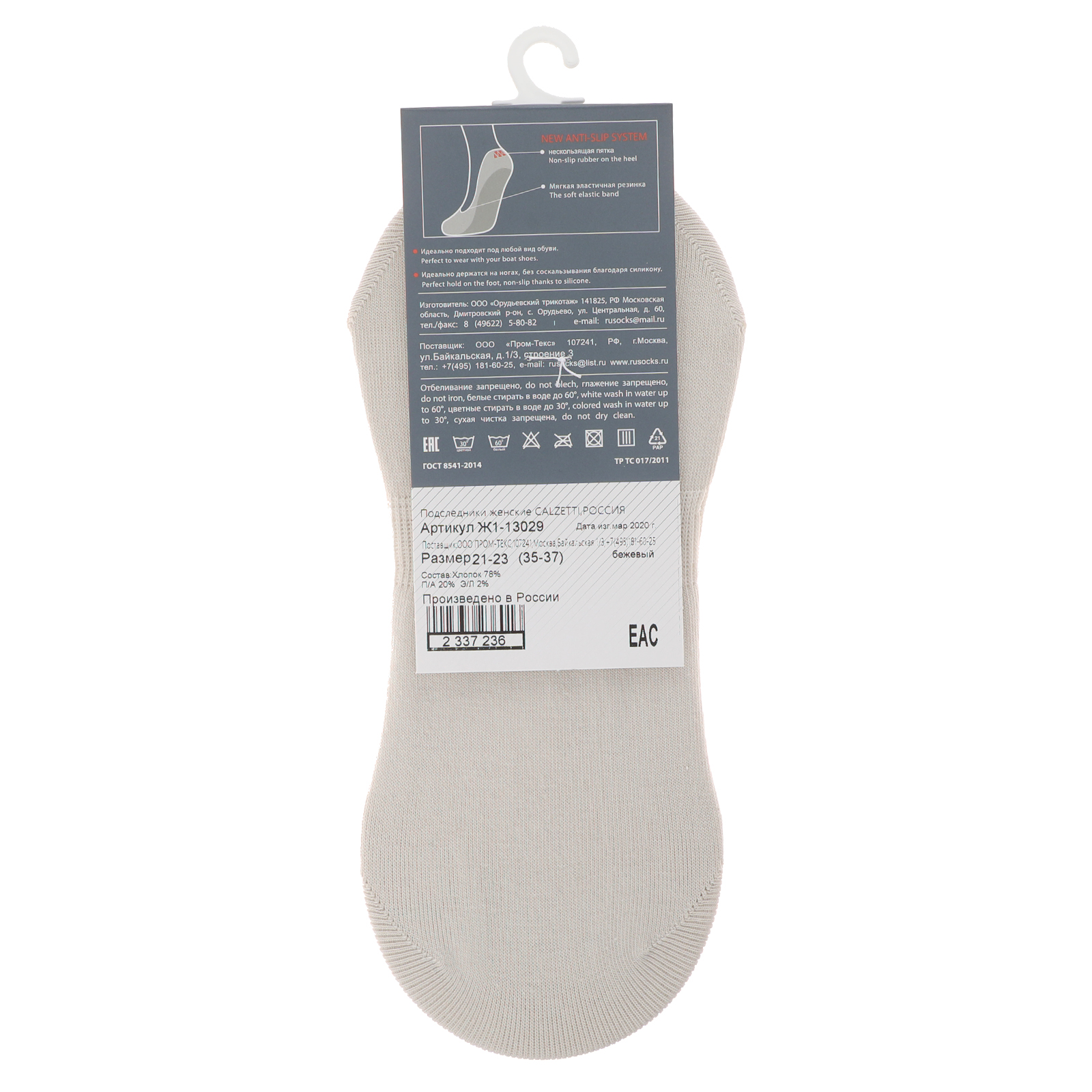Женские подследники CALZETTI 2337234, светло-бежевый