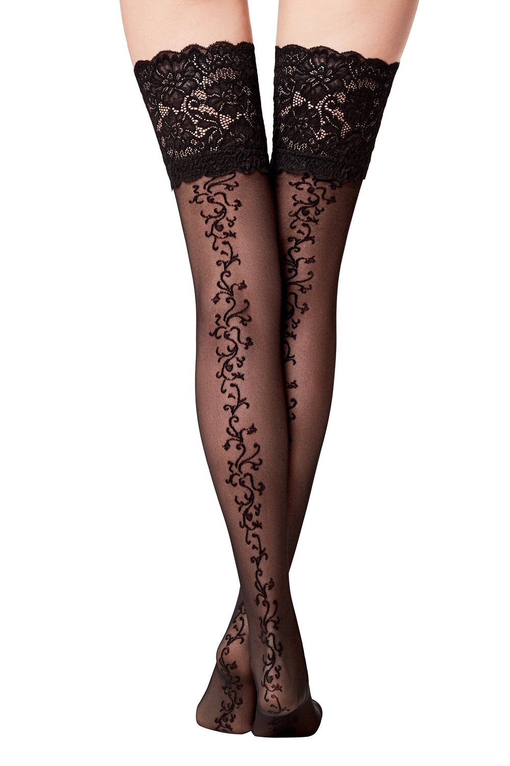 Тонкие чулки с цветочным рисунком сзади ноги и широкой ажурной резинкой – то, что нужно для стильных образов и абсолютной уверенности в себе.· 20 den· тонкие и эластичные· самоподдерживающаяся ажурная резинка· плотное облегание· цветочный рисунок сзади ноги· созданы для абсолютной уверенности в себе.