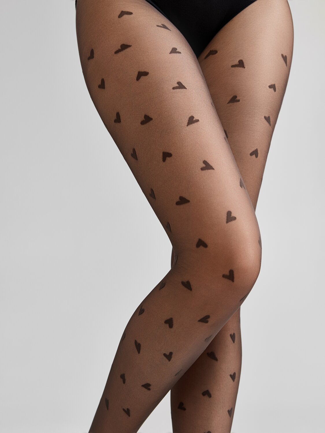 Колготки с рисунком «сердечки» помогут создать нежный женственный образ, идеально передав ваше чувственное настроение. Благодаря двойному оплету нити LYCRA вам будет комфортно носить колготки на протяжении всего дня.