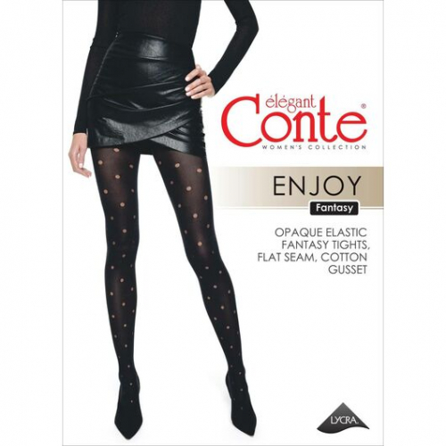 Дизайнеры Conte предлагают взглянуть на любимый рисунок по-новому с помощью плотных фантазийных колготок ENJOY в прозрачный горошек. 60 den, удобный пояс, пробивочный рисунок «горошек», плоский шов, хлопковая ластовица. полиамид 94%/ эластан 6%