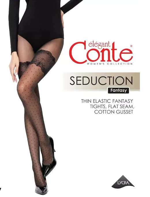 Колготки в точку с имитацией чулок c ажурной резинкой Seduction - модель, которая гарантированно привлечет внимание к красоте ног и подарит абсолютную уверенность в себе. полиамид 90%/ эластан 10%