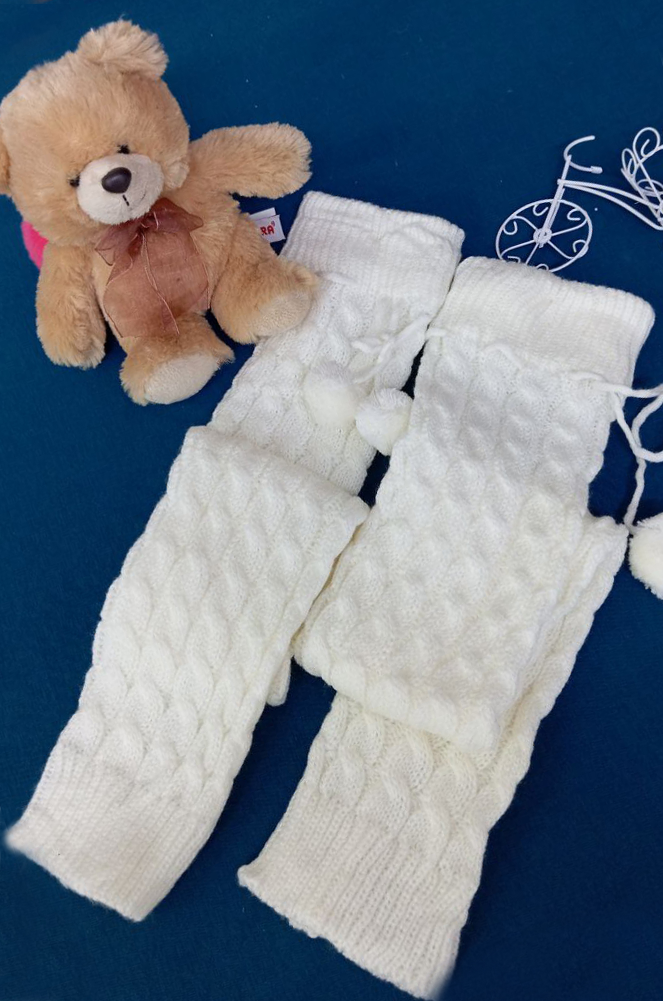 Красивый узор, крупная вязка и помпоны покорят сердце каждой девушки. Их можно носить как выше колена, так и слегка присборенными. Фиксацию на ноге обеспечивают манжеты и веревочка с помпонами. Гетры хорошо тянутся и сядут на любую ножку, размер универсален.