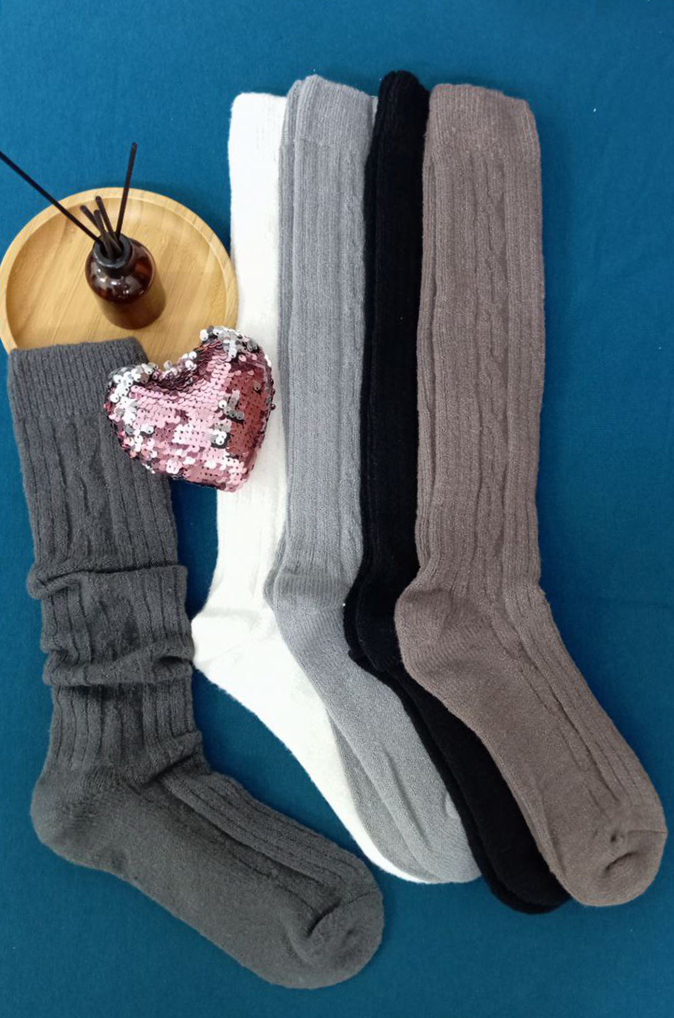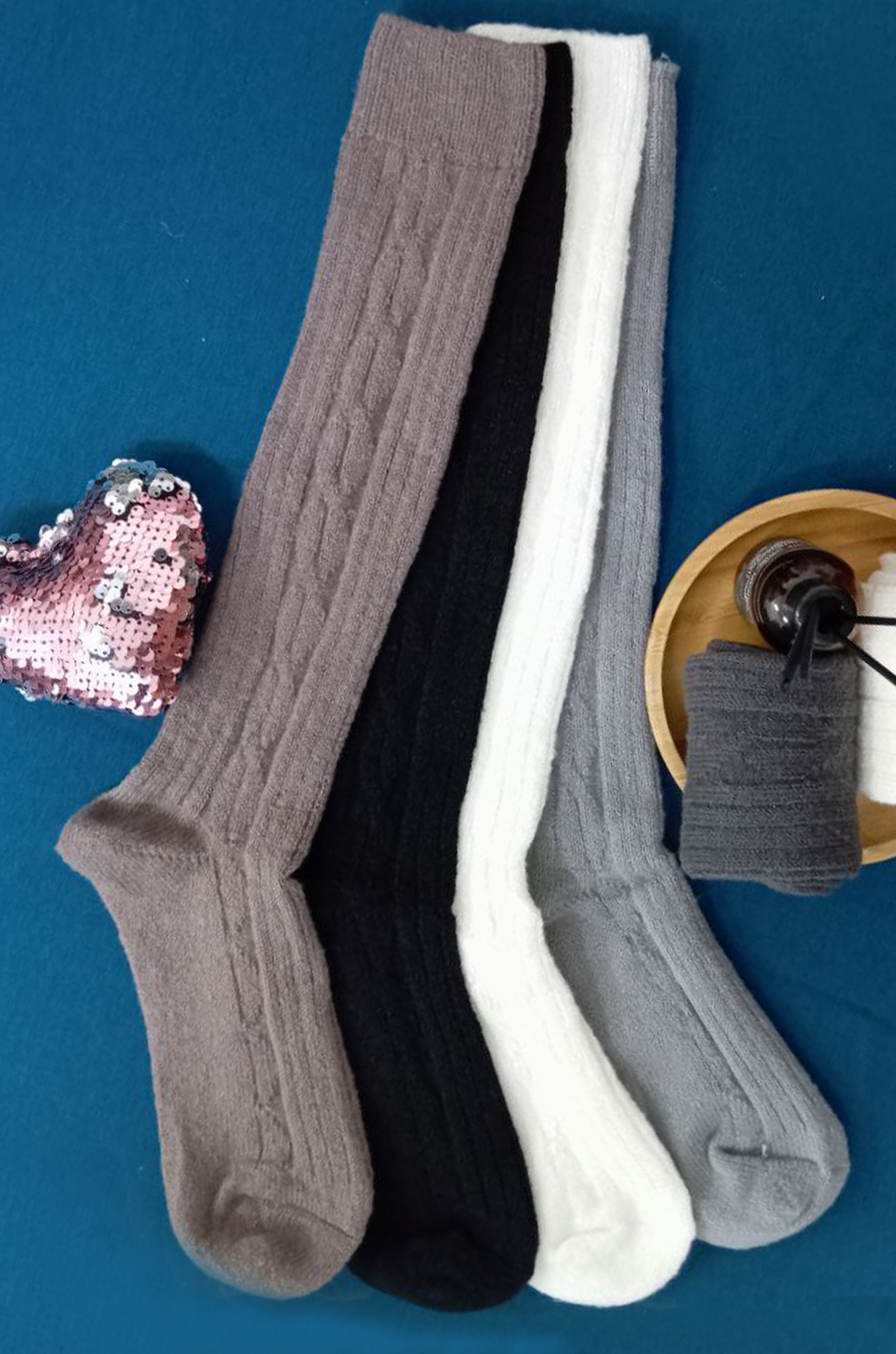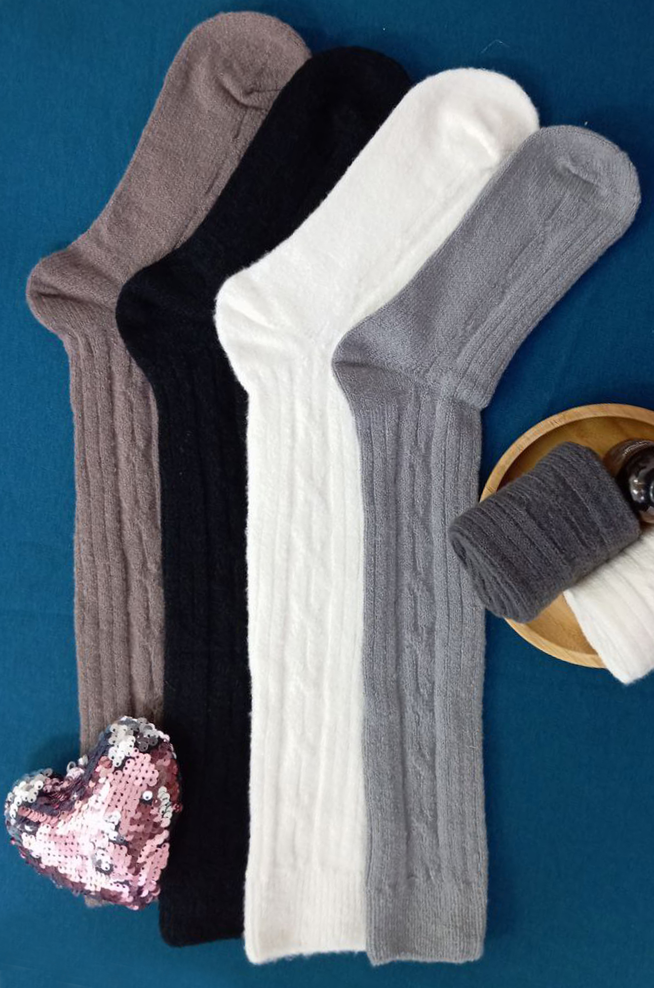 Уютные и тёплые однотонные шерстяные гольфы с вывязанным узором. Гольфы сохранят ваши стопы в тепле, а эластичный материал даст идеальную посадку на ноге. Высота паголенка 36см.