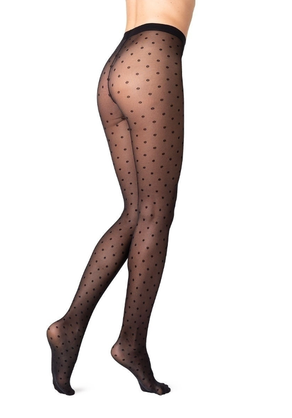 Модные полуматовые колготки 40 DEN в крупный горошек, без трусиков. Плоский шов, невидимый мысок. Оригинальные бежевый - daino, чёрный - nero .
