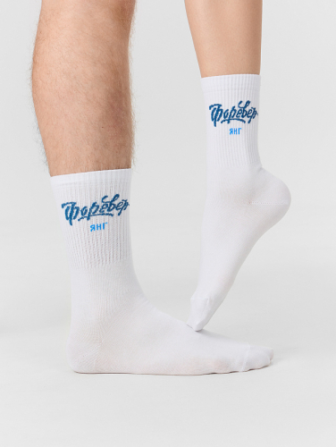 рис.3285 Носок высокий с плотным бортом и рисунком в виде надписи "ФОРЕВЕР янг".