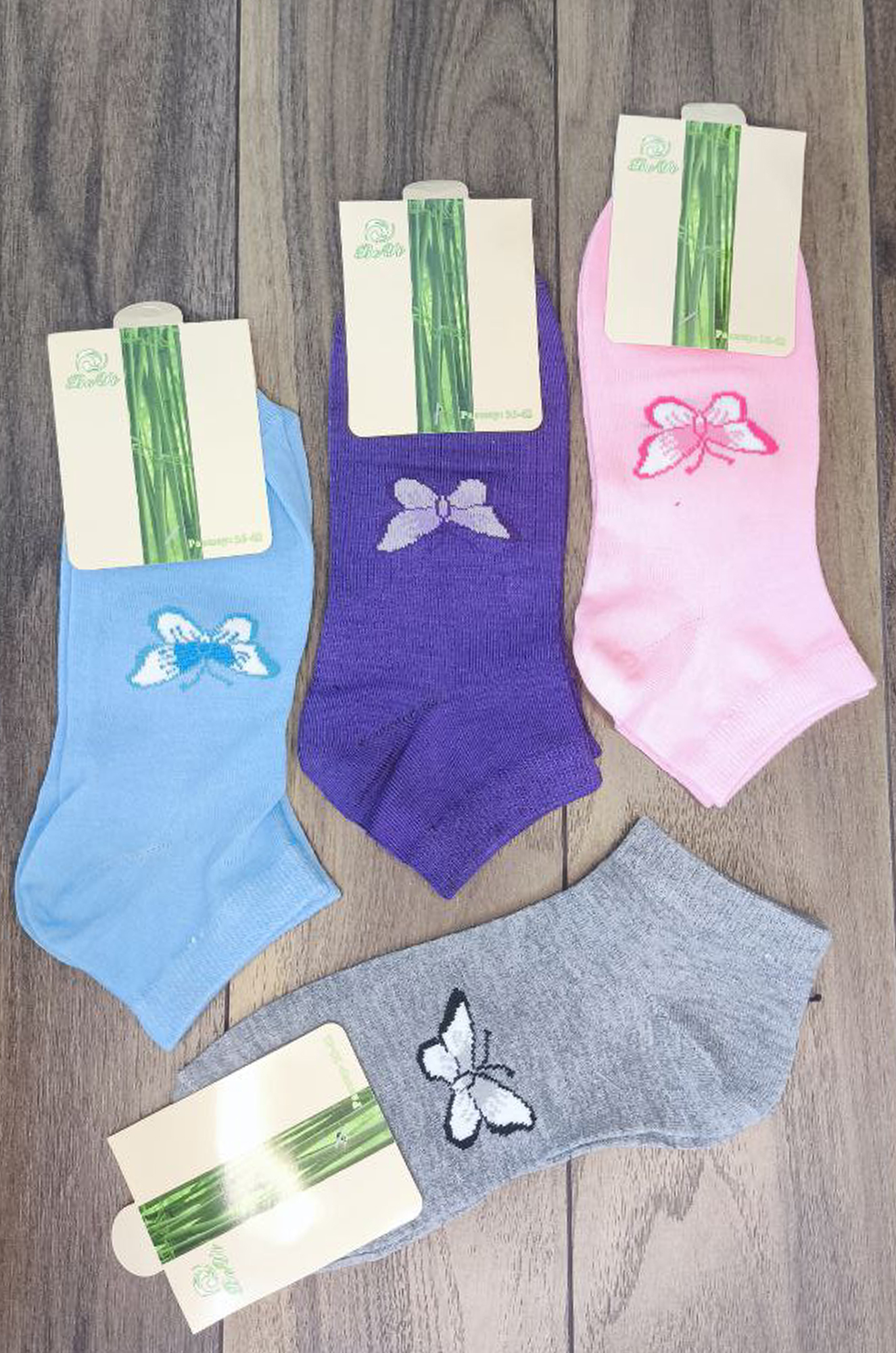 Лёгкие женские носочки укороченной модели с эластичной резиночкой и ненавязчивым принтом. Модель из хлопка с добавлением пэ нити. Производство Китай.
