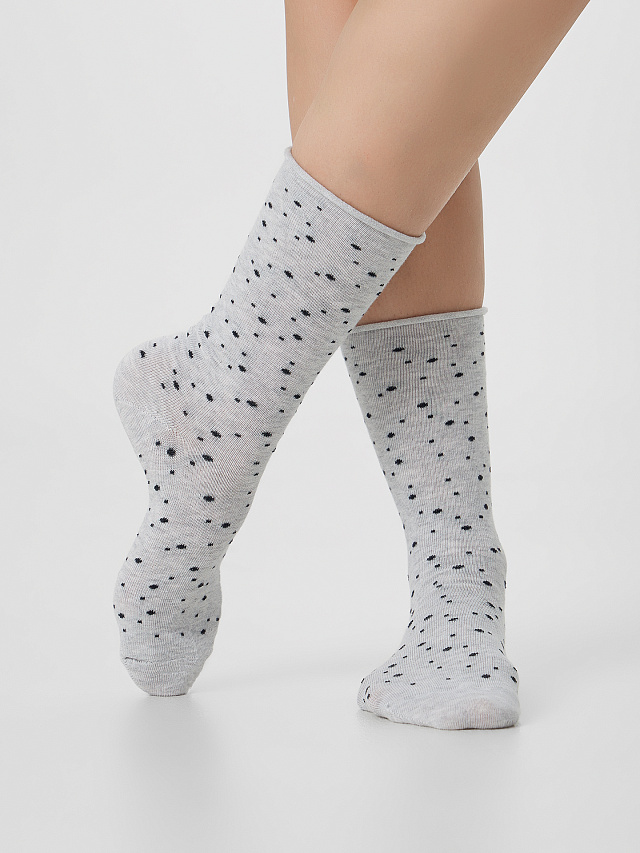 рис.2689 Женские носки высокие классические без резинки с рисунком в виде мелкого горошка.