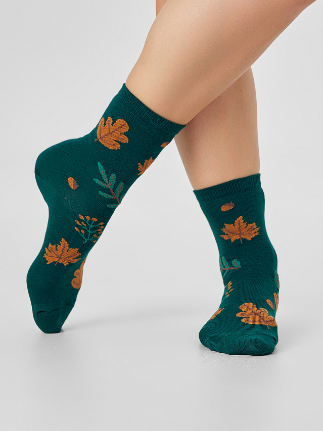 рис.3506 Женские классические носки с рисунком в виде листьев.