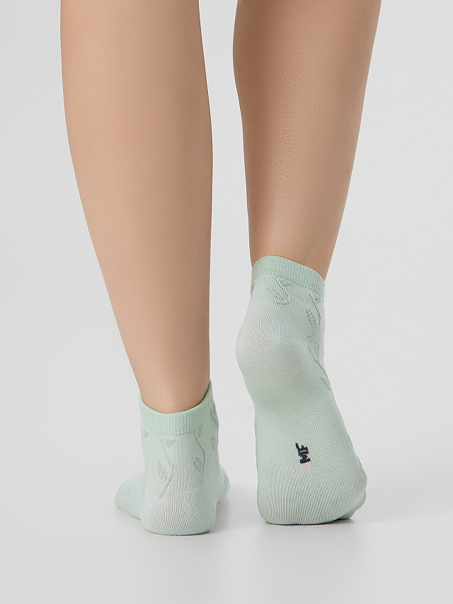 рис. 3124 Женские укороченные, однотонные носки,выработанные перекидным переплетением с рельефным рисунком в виде веточек.