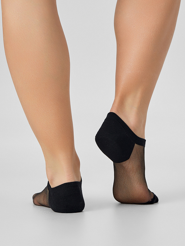Женские суперкороткие носки с хлопковой пяткой и мыском и прозрачным полиамидом на следу.