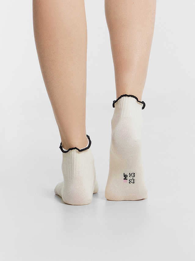 Носки короткие женские с обработкой бортика оверлоком. Созданы из высококачественного гребенного хлопка. Очень тонкий, мягкий и при этом прочный материал как нельзя лучше подходит для того, чтобы изготавливать спортивные и летние женские носки. Он отлично пропускает воздух, позволяя коже дышать, а также впитывает влагу; ноги в таких носочках не потеют, и вы чувствуете себя максимально комфортно в течение всего дня. И, хотя в этих носках женских коротких хлопок безусловно преобладает, не лишним является добавление небольшого количества синтетических волокон. Благодаря наличию эластана в составе, носки спортивные короткие женские хорошо облегают стопу и сохраняют форму даже после множества стирок. Пятка и мысок модели усилены для защиты от протирания при активном движении. Резинка эластичная, не давит, но надежно фиксирует носок на ноге.
