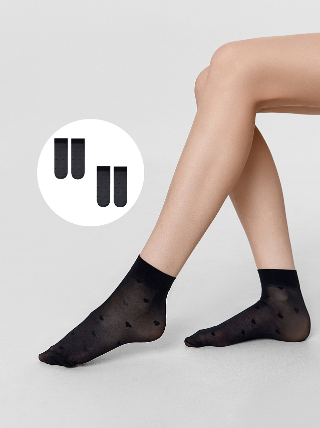 Рис. 3307. Женские капроновые носки тонкие с рисунком в виде сердечек. Классическая модель из полиамида 40 ден.