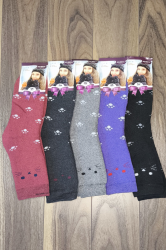 Женские махровые термо носочки с кошачьим принтом согреют вас в любые холода. Носки классической высоты сверху имеют эластичную резинку, она мягко и надёжно фиксирует носок на ноге.