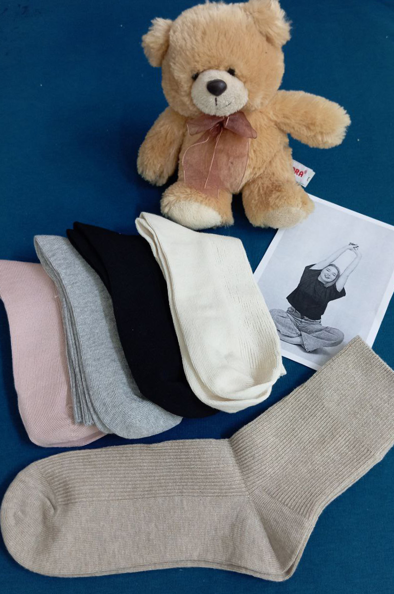 Женские высокие носки - лучшее решение на каждый день! Модель из плотного, эластичного хлопка высокого качества, широкая резинка "в рубчик" отлично держит носок.
