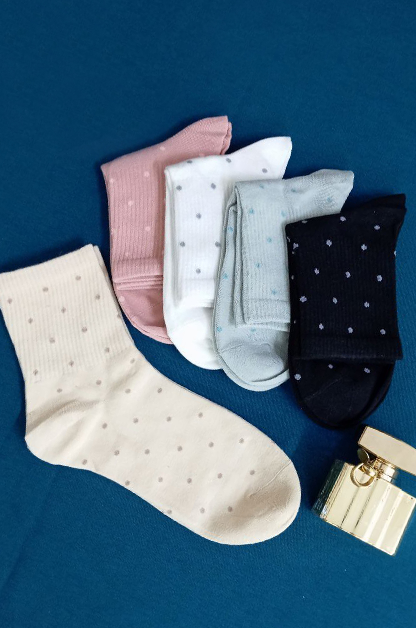 Хлопковые женские носочки средней высоты с прином "горошек". Широкий манжет "в рубчик" отлично держит носок по ножке.