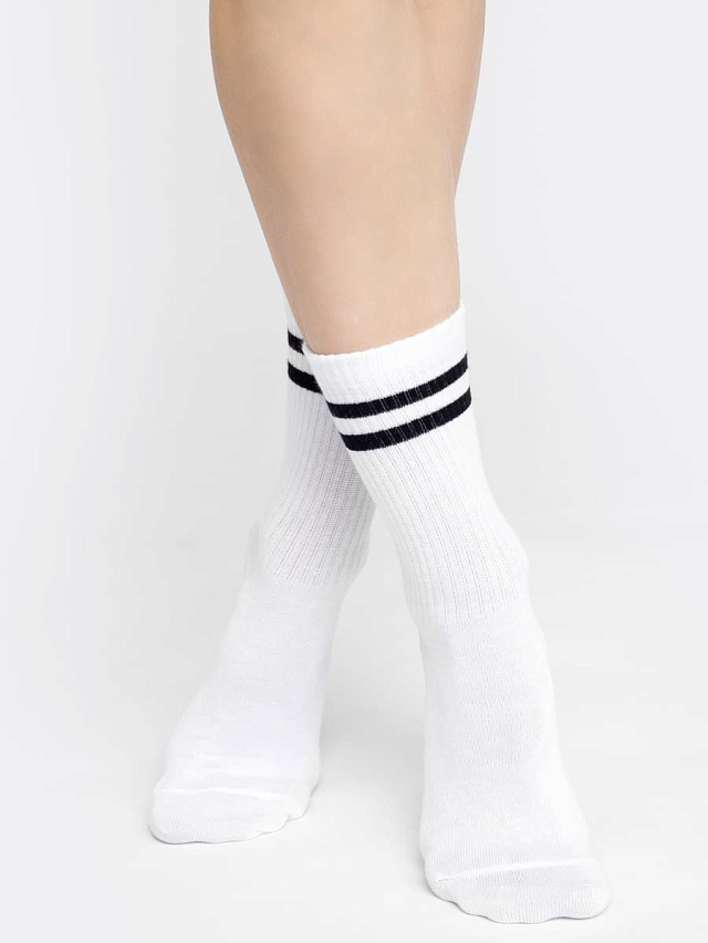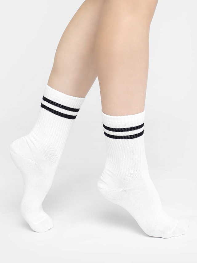 Высокие классические носки женские с плотной высокой резинкой и яркими контрастными полосками. Носки женские выполнены из высококачественного гребенного хлопка — тонкого, прочного и эластичного. Натуральные волокна отлично пропускают воздух и впитывают влагу, обеспечивают ощущение комфорта в течение дня. Благодаря небольшому количеству эластана в составе, носочки хорошо облегают и сохраняют форму, практичны и долговечны. Пятка и мысок дополнительно усилены для защиты от протирания при активном движении. Резинка мягко, но надежно удерживает носки, не передавливая ногу и не оставляя на коже следов. Отличный вариант на каждый день!