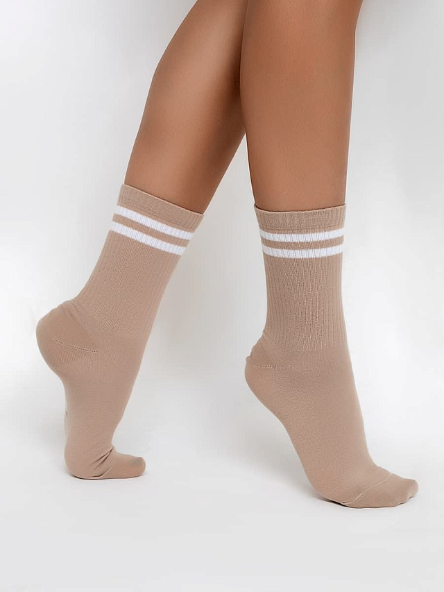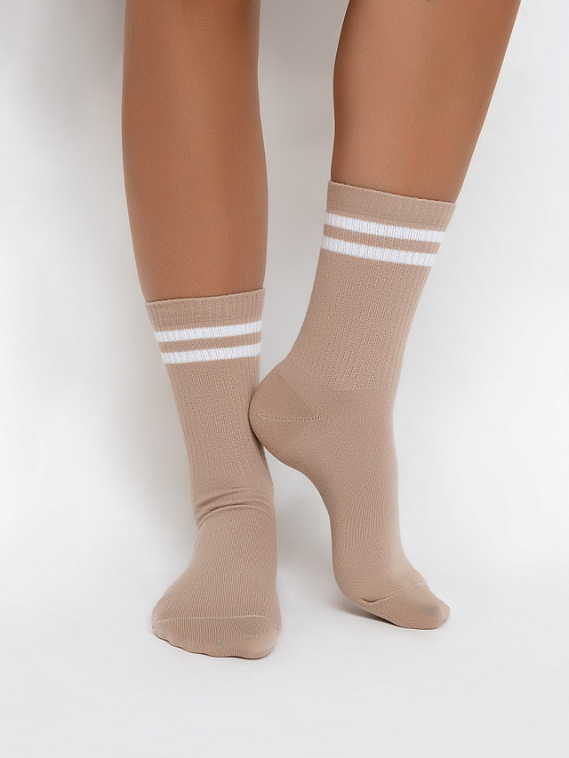 Высокие классические носки женские с плотной высокой резинкой и яркими контрастными полосками. Носки женские выполнены из высококачественного гребенного хлопка — тонкого, прочного и эластичного. Натуральные волокна отлично пропускают воздух и впитывают влагу, обеспечивают ощущение комфорта в течение дня. Благодаря небольшому количеству эластана в составе, носочки хорошо облегают и сохраняют форму, практичны и долговечны. Пятка и мысок дополнительно усилены для защиты от протирания при активном движении. Резинка мягко, но надежно удерживает носки, не передавливая ногу и не оставляя на коже следов. Отличный вариант на каждый день!