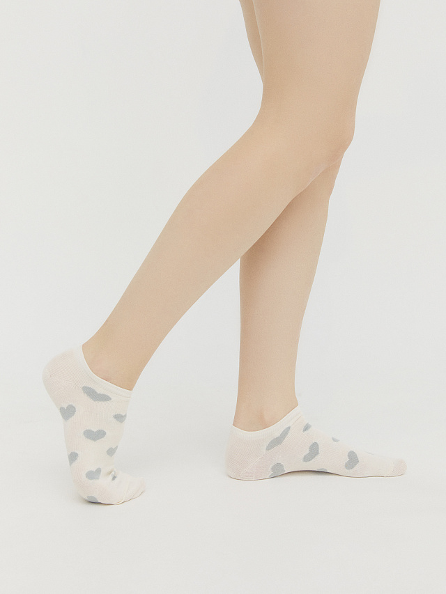 Носки женские молочно-белые с рисунком в виде крупных сердец