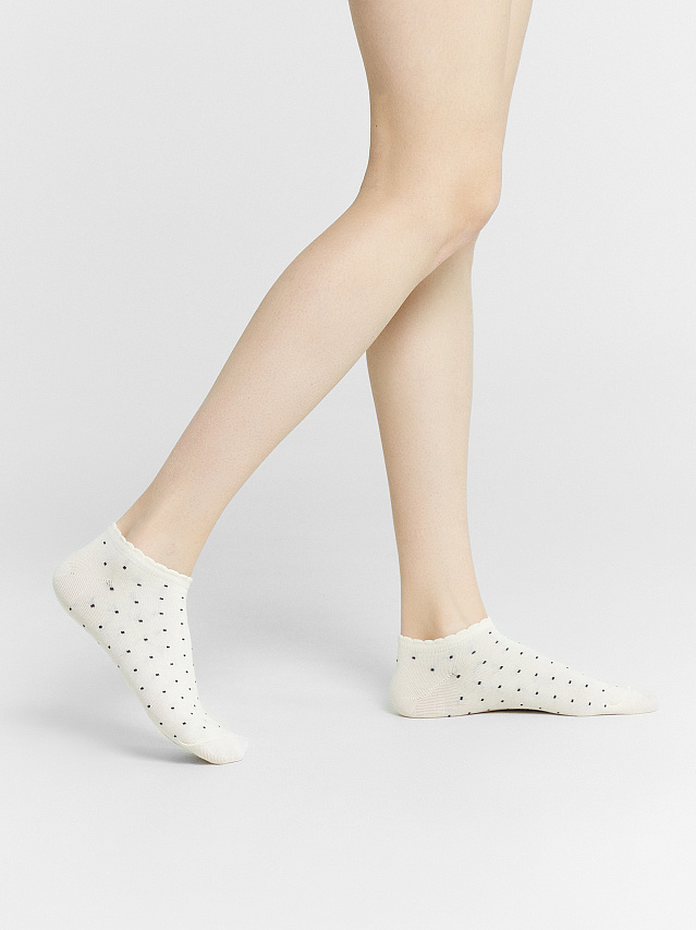 Носки женские молочно-белые с рисунком в виде мелкого гороха
