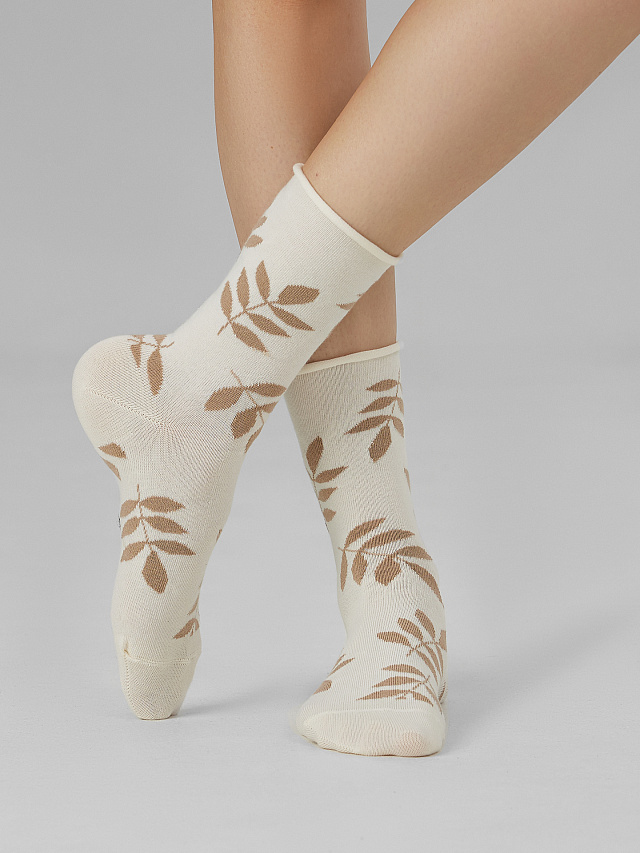 Носки женские молочные с узором