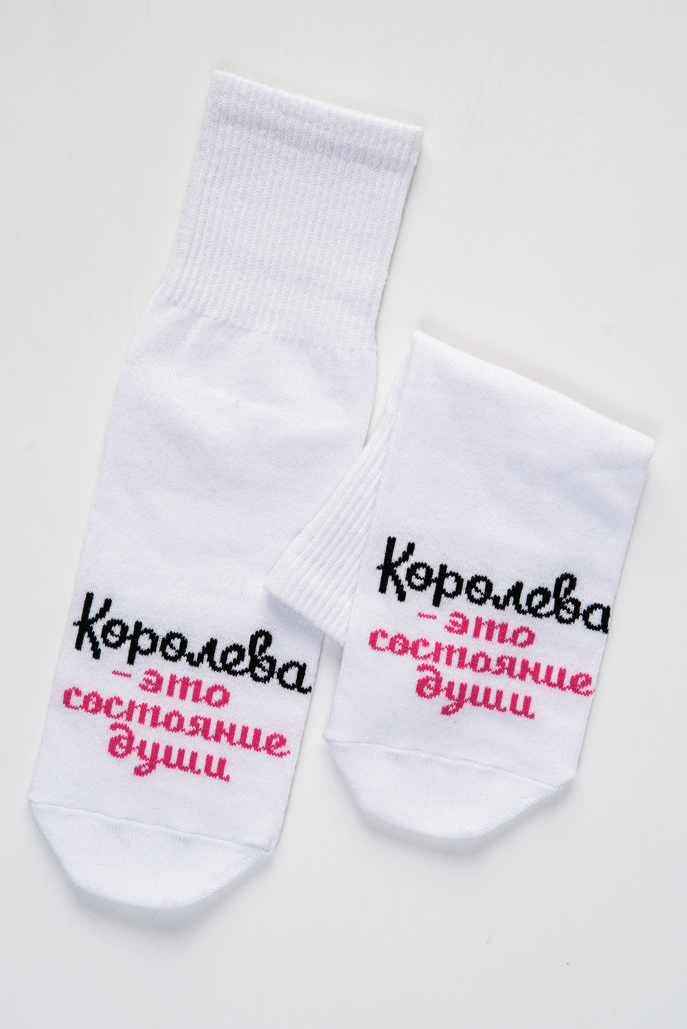 Добавьте изюминку в свой повседневный образ! Белые носки с яркой надписью «Королева – это состояние души» вдохновят на уверенность и поднимут настроение каждый день. Мягкий хлопок, идеальная посадка — выбирайте стиль, который говорит за вас! Подходят для подарка и для себя любимой. Расцветка: белый (ед.); Состав: 72% х/б 22% ПА 4% ПП 2% эластан.