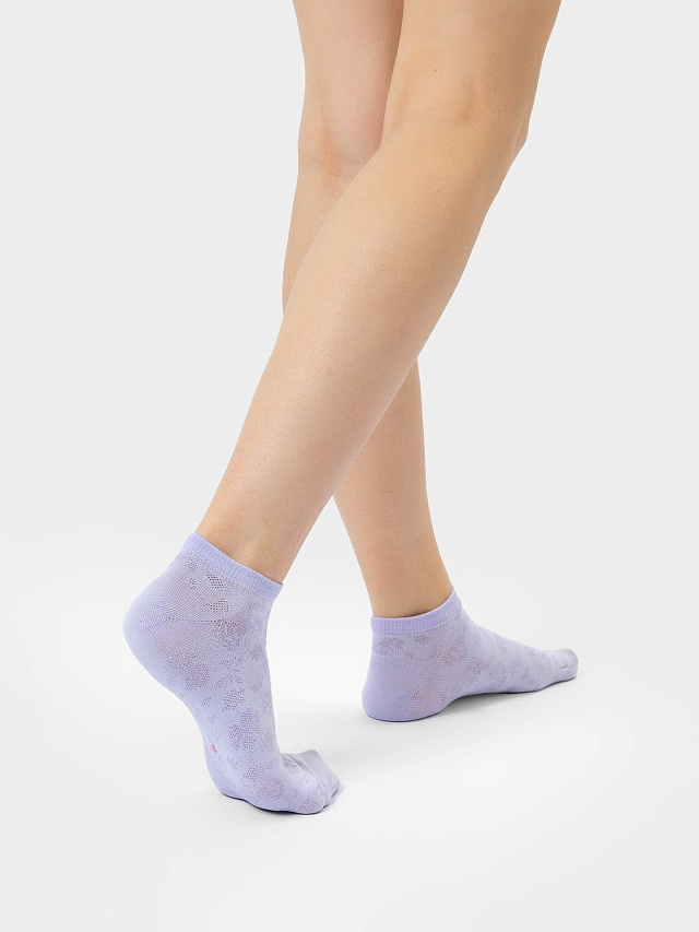 Носки женские укороченные в фиолетовом оттенке с рисунком цветов