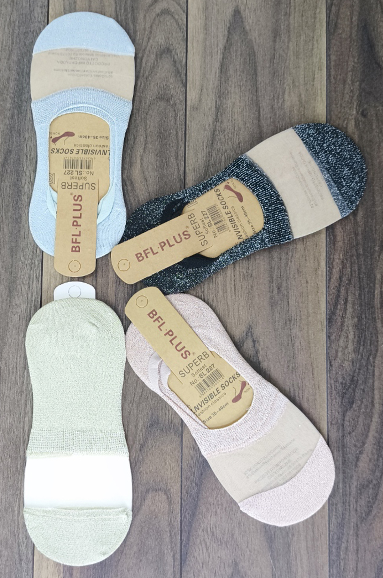 :енские следочки с люрексом и капроновой вставкой!  Смотрятся мило и нежно. Следки хорошо облегают ножку, пятка внутри с нескользящим силиконовым дизайном. Подходят на узкую ножку. Производство фабричный Китай хорошего качества.