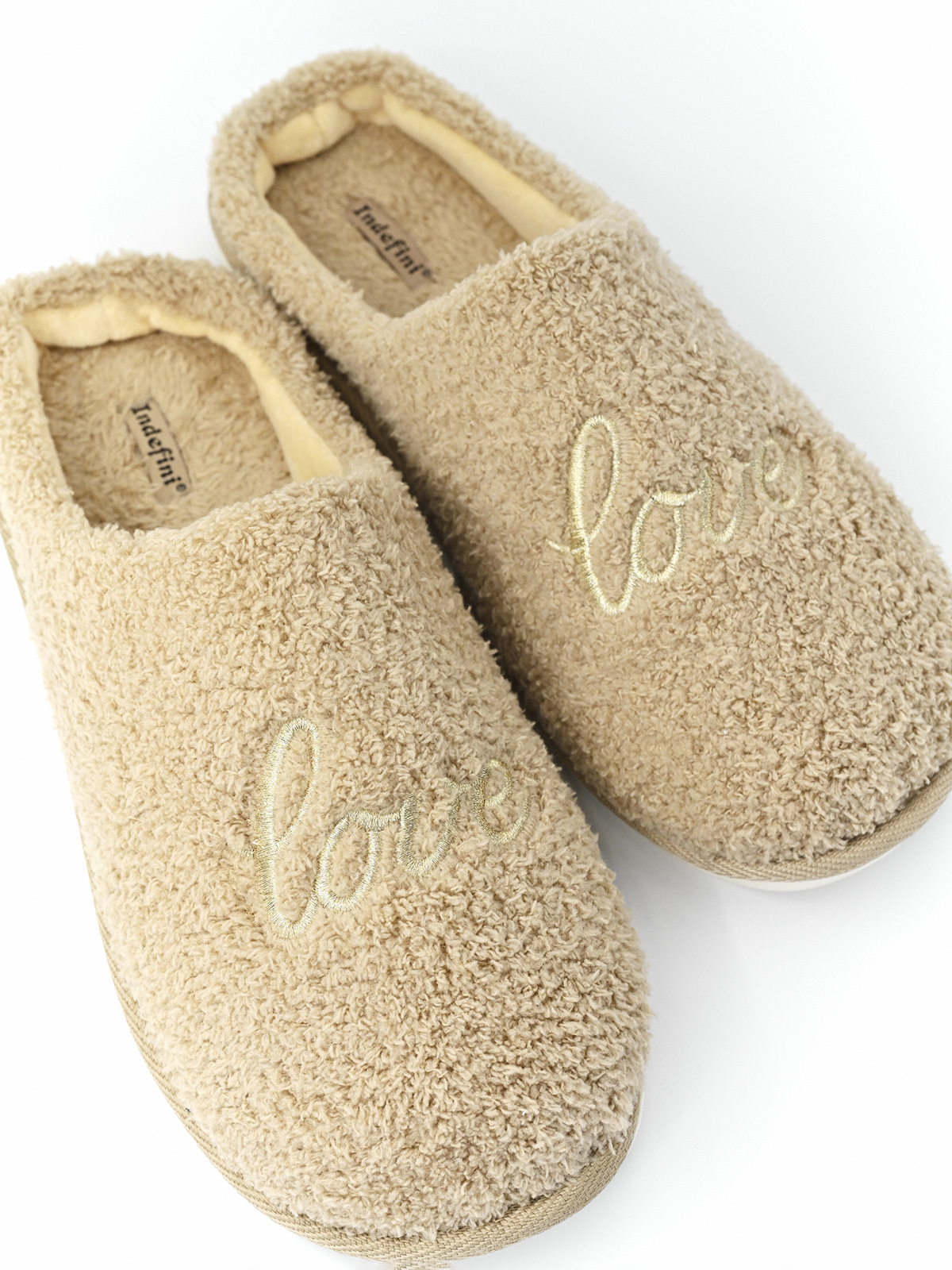 Выполнены в нежно-бежевом цвете с изящной золотистой вышивкой слова «love» на верхней части.