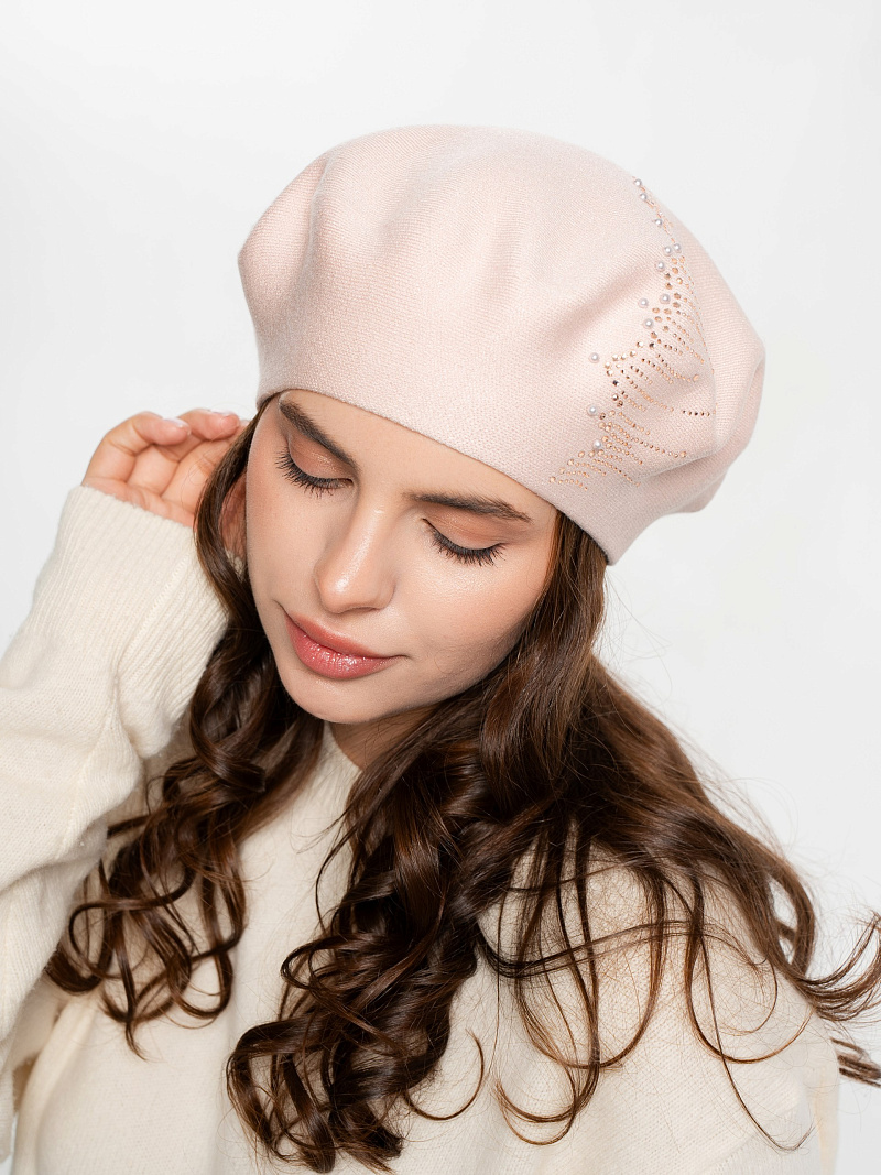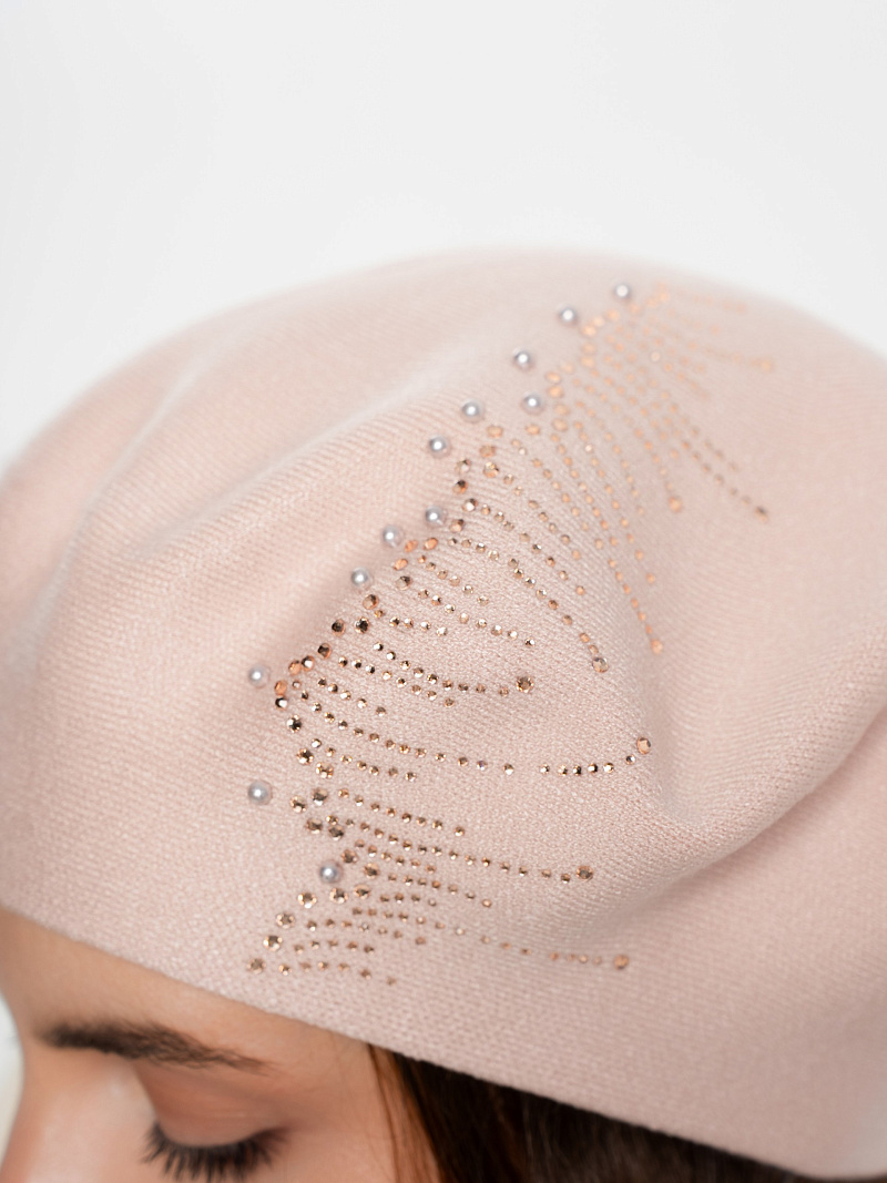 Берет полуторный со стразовым мотивом и жемчугом