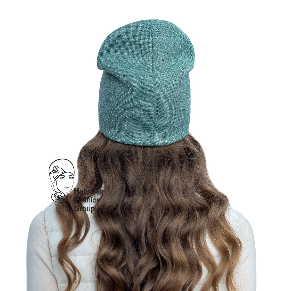 Молодежная двойная шапка-бини из трикотажного полотна с добавлением люрекса.