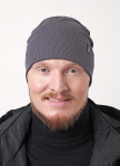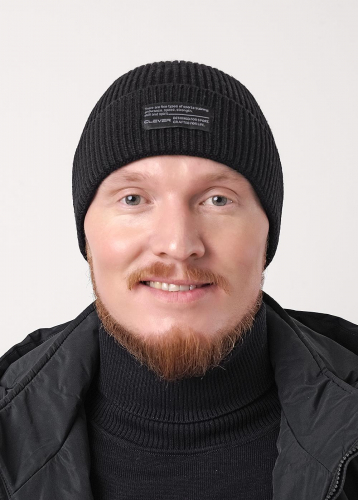 Стильная молодежная шапка двойная с отворотом, без флса, декорирована имиджевой нашивкой логотип. Подходит для холодной осени, тёплой зимы.