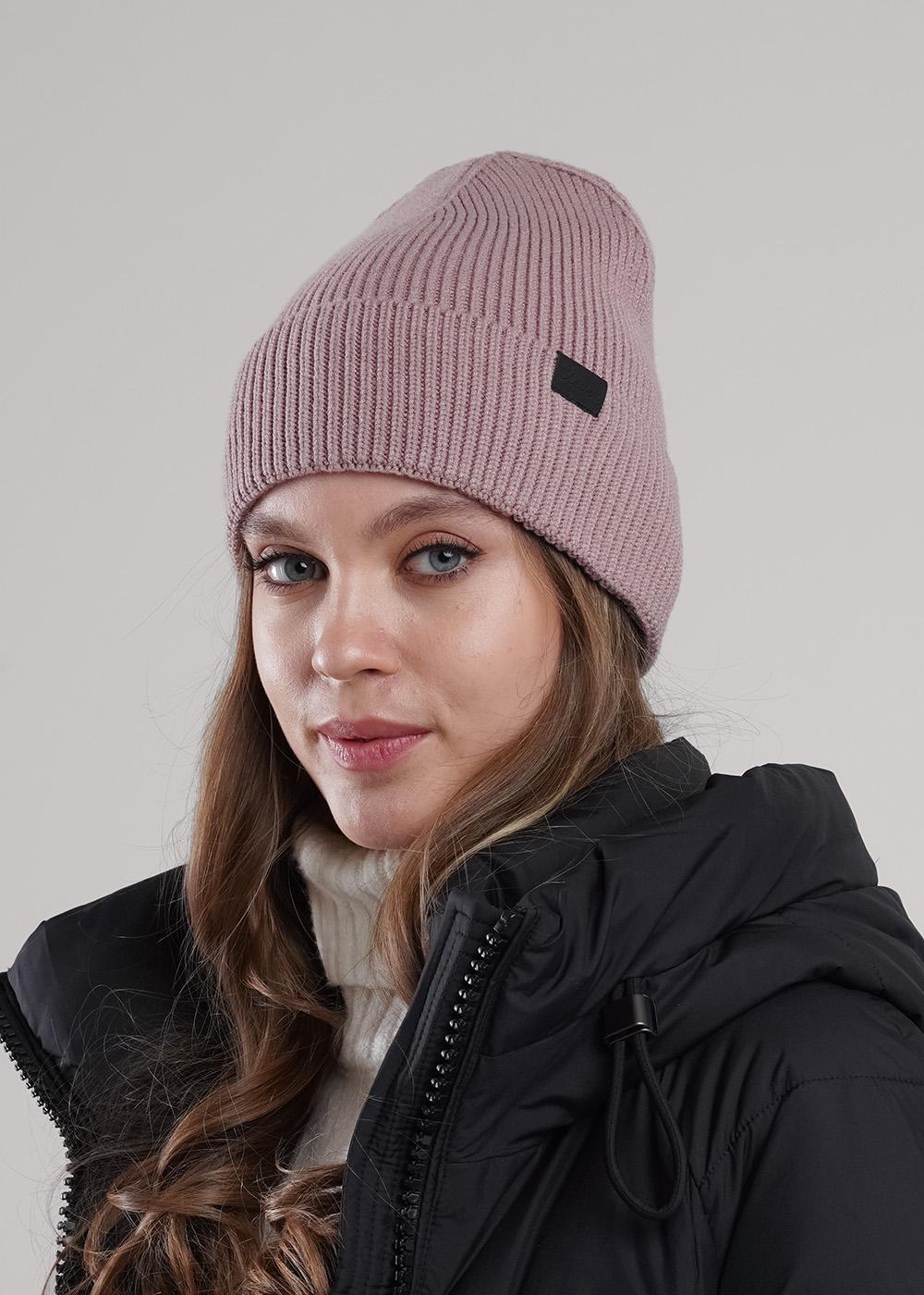 Шапка женская однослойная с отворотом, без подклада. Декорирована стильной нашивкой. Станет не только отличной защитой от холода, но и модным аксессуаром.