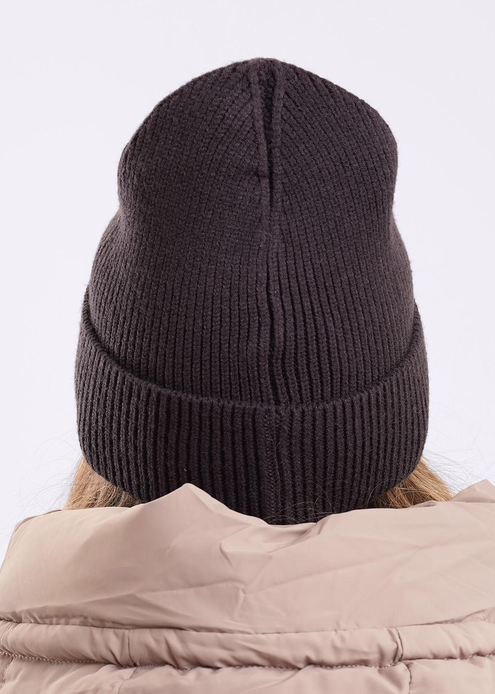 Шапка женская однослойная с отворотом, без подклада. Декорирована стильной нашивкой. Станет не только отличной защитой от холода, но и модным аксессуаром.