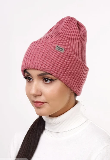 Женская двойная шапка с отвором, связаная ластичным переплетением . Декорирована нашивкой- логотип. Идеально подойдёт для холодной осени- зимы.