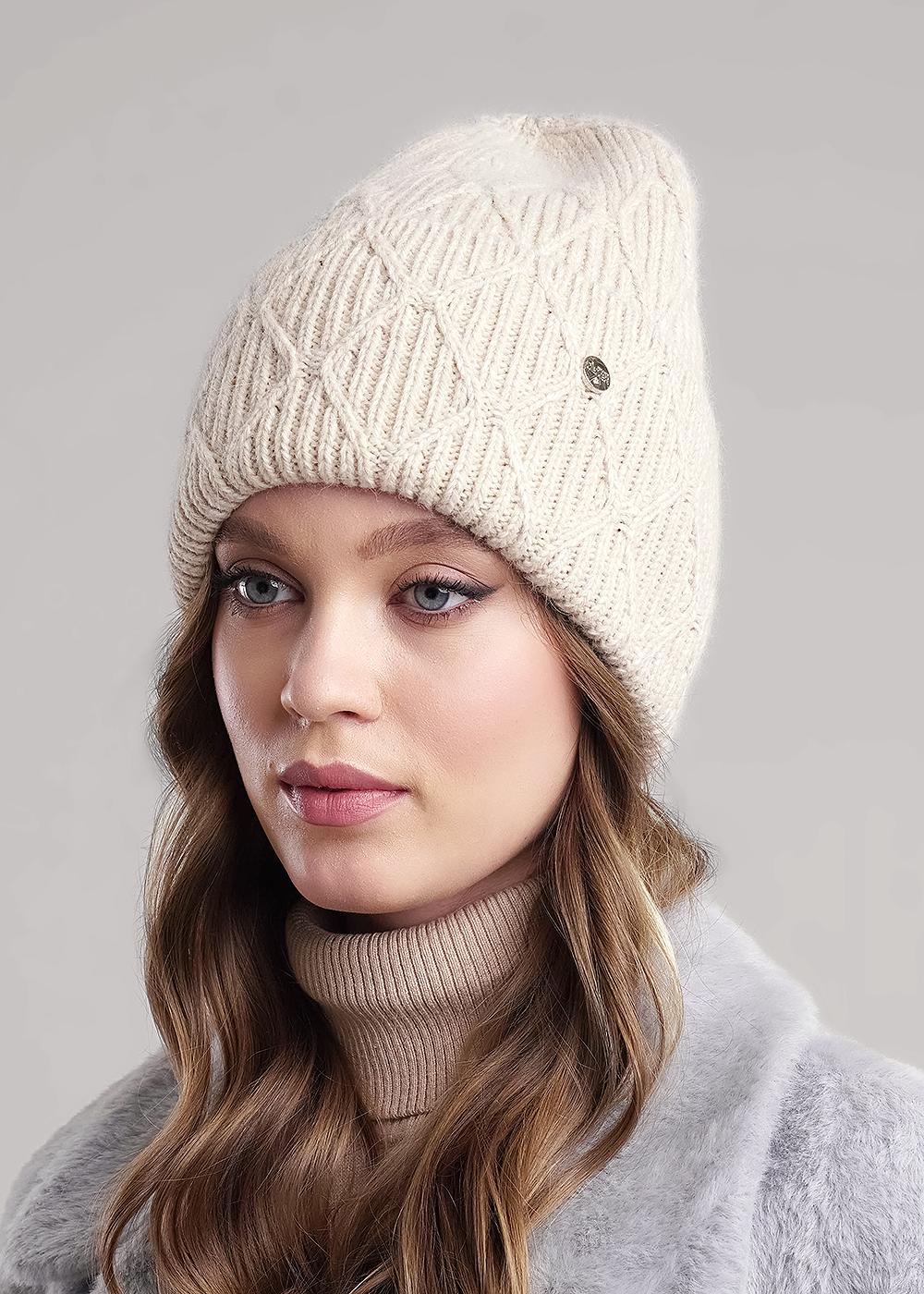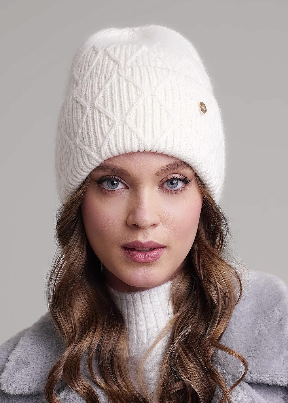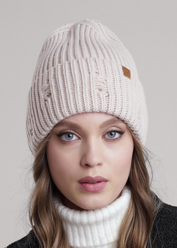 "Описание: Женская шапка с отворотом выполнена из высококачественной пряжи с добавлением ангоры, декорирована стильной нашивкой. Утепление флисом по всей голове. Станет не только отличной защитой от холода, но и модным аксессуаром.