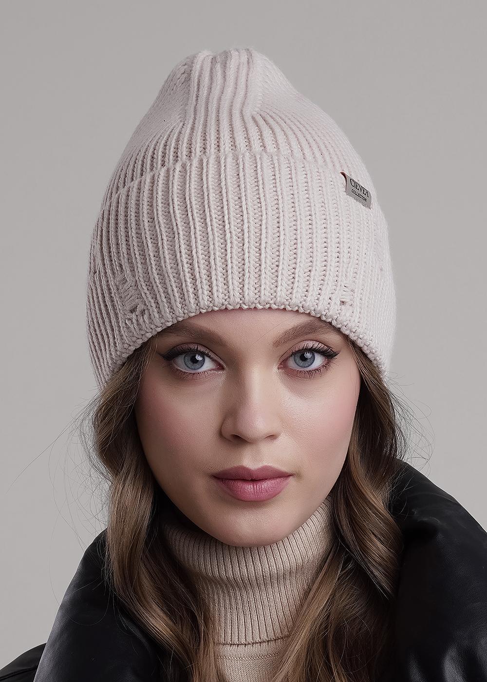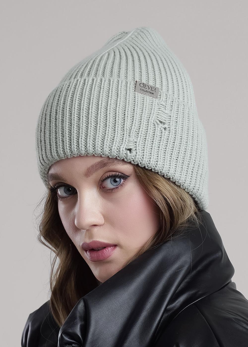 "Описание: Женская шапка рваная с отворотом, с утеплением флисом по всей голове, декорирована стильной нашивкой в височной зоне. Отлично подойдет для холодной зимы.