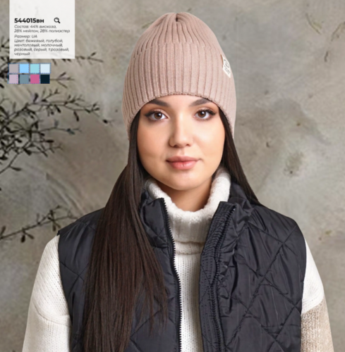 Женская шапка с отворотом, декорирована нашивкой логотип в височной зоне. Идеально подойдёт для весенне- осеннего периода.