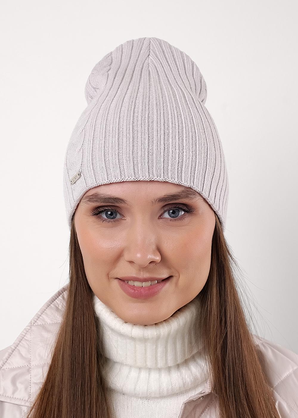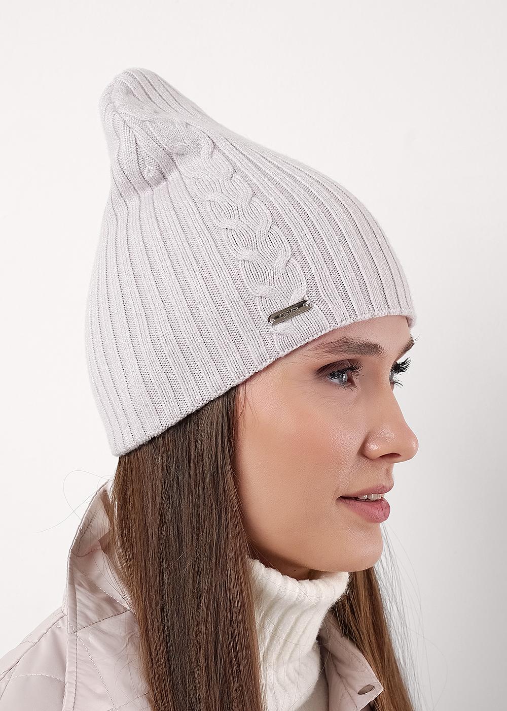 "Описание: Шапка женская двойная, декорирована узором косы, без отворота, без подклада, хорошо сохраняет тепло. Отличный выбор для прохладной осени и ранней весны.