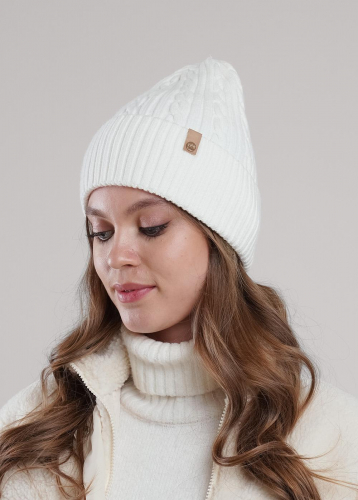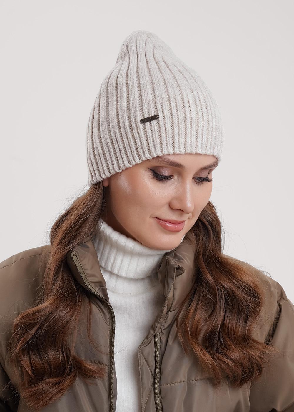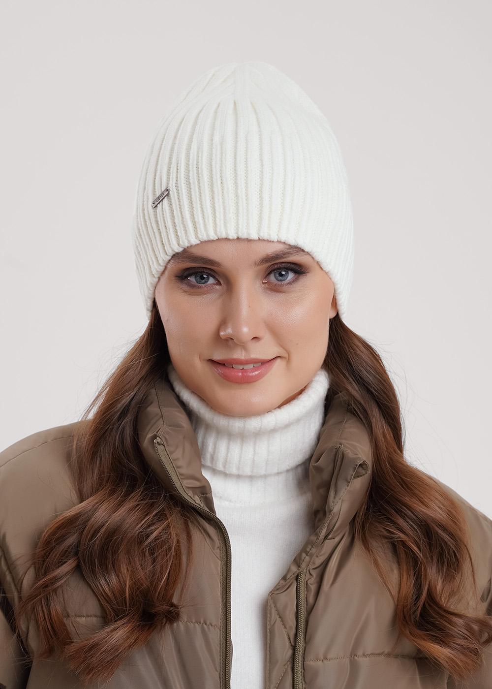 "Описание: Женская однослойная шапка без отворота, без подклада. Декорирована нашивкой логотип. Станет не только отличной защитой от холода, но и модным аксессуаром.